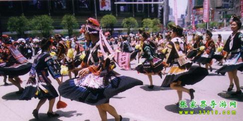 亞宜帶領(lǐng)眾人迎敵,戰(zhàn)斗了三天三夜,終因寡不敵眾向西撤退,得到貴州苗族支持,同官家周旋了一年。第二年四月八亞宜和貴州英雄亞努等人戰(zhàn)死在貴陽城。從那時(shí)起,“四月八”就成了青年男女聯(lián)歡節(jié)和祭祀英雄的紀(jì)念日。盡管歷代統(tǒng)治階級(jí)都以各種借口加以禁止,而具有反抗精神的苗族人民,只是改變了跳花的形式,仍然保留著聚會(huì)對(duì)歌內(nèi)容。一年一次,世代相傳,知道民國(guó)時(shí)期各地才先后中斷。后于一九八一年國(guó)家民委批示統(tǒng)一在京的苗族過“四月八”而才得到恢復(fù)。一九八六年在鳳凰上下落朝井鄉(xiāng)龍?zhí)梁哟澹?ldquo;四月八”的發(fā)源地舉行隆重聚會(huì)。這一天啟明星才掛在樹尖尖上的時(shí)候,湘黔邊境各地的男女青年,身著節(jié)日的盛裝,踏著路邊毛草上的露珠,唱著歌,吹著木葉,嘻嘻哈哈,迎著燦爛的朝露,從各條彎彎的山道上,向“跳花溝”涌來。十嶺八坡,山溝里外,龍河兩岸都站滿了人,熙熙攘攘,熱鬧非凡。會(huì)場(chǎng)的正中掛有寬六尺長(zhǎng)七尺的淺紅大旗,繡有“四月八”三個(gè)大字,兩邊龍鳳圖案,莊嚴(yán)古樸,表示歷史悠久和不忘祖先功德。