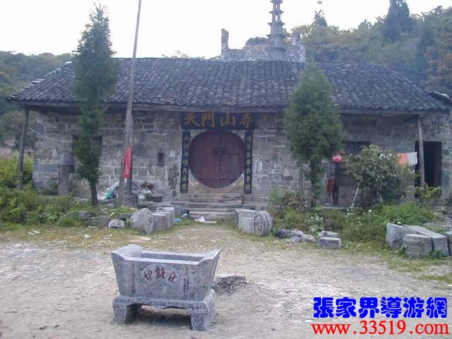 (天門山寺)天門山寺最早建于唐代,古稱云缽庵、靈泉院、嵩梁堂,明代時(shí),因擇址不當(dāng)而屢遭風(fēng)摧又常遭水荒,才將天門山寺從東部山頂遷移至此。以前這里古木參天,濃蔭蔽日。古寺門楣上刻有“天門仙山”四字,大門兩邊的對(duì)聯(lián)是:“天外有天天不夜,山上無(wú)山山獨(dú)尊”,傳為李自成部將野拂撰書。進(jìn)門為大佛殿后面有觀音堂,兩邊六間平房,最后一棟是祖師殿,規(guī)模宏大。民間概括為“三進(jìn)堂、六耳房,磚墻鐵瓦鍋如壙”。山寺原建筑十分講究,飛檐翹角,雕龍畫鳳,并塑有佛道神像菩薩等。還有大鼓一面,千斤大鐘一口,一座七級(jí)石塔和一個(gè)大化錢爐。據(jù)碑刻記載,自清乾隆至民國(guó)五年的163年間,天門山寺共修葺過(guò)七次,香火曾盛極一時(shí),湘鄂川黔邊境十多個(gè)縣的信徒絡(luò)繹不絕,都來(lái)這里進(jìn)香拜佛。現(xiàn)天門山旅游股份有限公司正在大規(guī)模地修復(fù)天門山寺,昔日的繁華又將重現(xiàn)。