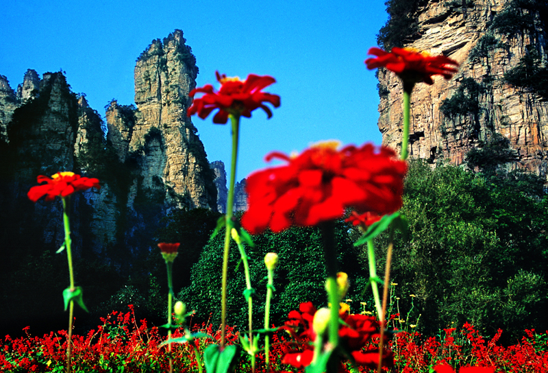 上 午: 游覽“擴大的盆景,縮小的仙境”有峰林之王稱號的---天子山景區(qū)(仙女散花、御筆峰、天子閣、云巖等景點),賀龍公園,十大元帥之一的——賀龍銅像,后前往山下的景區(qū)游覽。(下山有兩種方式:其一:可徒步經(jīng)臥龍嶺下行至山下的十里畫廊景區(qū)。其二:也可在天子山索道上站乘坐索道下山,然后再乘坐景區(qū)環(huán)保車至武陵源標志門。