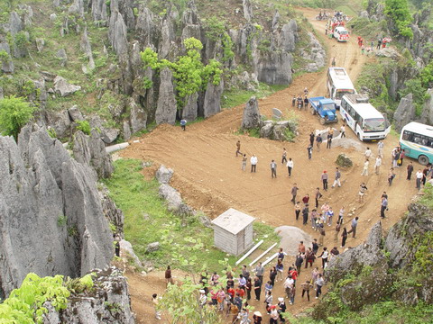登上洛塔,只見(jiàn)連山綿谷,萬(wàn)石如林,一塊塊青灰色的大石頭競(jìng)高競(jìng)秀,競(jìng)美競(jìng)奇,綿亙縱橫,層疊交錯(cuò),造型奇特,塔狀、蓮臺(tái)狀、羅漢狀、錐狀、刀狀、箭簇狀、帷幕狀等林立薈萃,像一個(gè)個(gè)神奇的迷宮,組成洛塔地質(zhì)公園的旖旎景觀。有的玲瓏斫剔,若女繡工鐫;有的嶙峋怪異,如鬼斧神鑿;有的崢嶸巉峻,似水墨丹青;有的嵯峨兀立,藤蔓纏繞,更像一株株挺拔的古樹(shù)。高的、矮的、大的,細(xì)的。粗、瘦、皺、滑,各具特色,如人之面目相具而無(wú)一相似者,在綠樹(shù)紅花間亮麗起一道道迷人的風(fēng)景。洛塔石林遍及整個(gè)山界,較集中的有楠竹車(chē)水坪石林、梭洛趙家灣石林、八仙洞石林及公路沿線的銀河塔石林,僅車(chē)水坪一帶的石林面積就達(dá)1000多畝。無(wú)論其規(guī)模面積,造型及組合情況,洛塔石林都可與云南石林媲美。