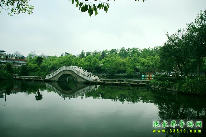 岳屏山下的原江西會(huì)館舊址,改建成為博物館,內(nèi)有王夫子專館和古物商店,龍年龍展,更是令人矚目。和博物館為鄰的是花圃,四時(shí)八節(jié),有花卉幽蘭供人觀賞。同博物館只有一條馬路之隔的人工湖,是在大灣塘的基礎(chǔ)上疏鑿而成的,有一潭名云水池,繞池有一條環(huán)行小路,北有湖心亭,亭和湖心島之間有仿頤和園玉帶橋相聯(lián),人們可以在湖島上戲游和小憩。過(guò)曲橋、繞回廊,便是類似西湖平湖秋月形的亭榭,上有吊腳茶亭,亭上有楹聯(lián):"云岫蒼??叭氘?水波蕩漾自成文.此聯(lián)深入淺出,有雅俗共賞之妙。"