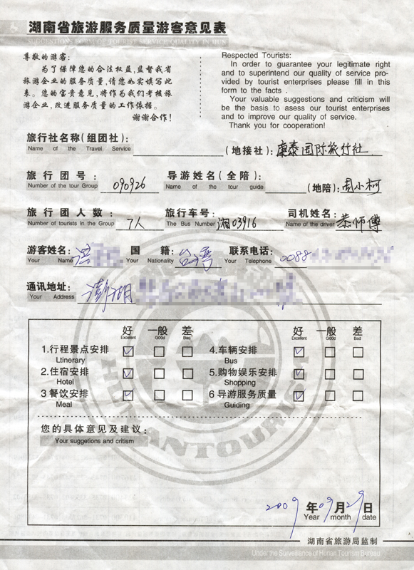 - 2011年10月5日黃先生一行17人旅游質(zhì)量反饋 [7847]