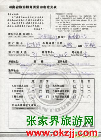 2009年11月9日馬來西亞yeap先生一行31人旅游接待質(zhì)量反饋單: