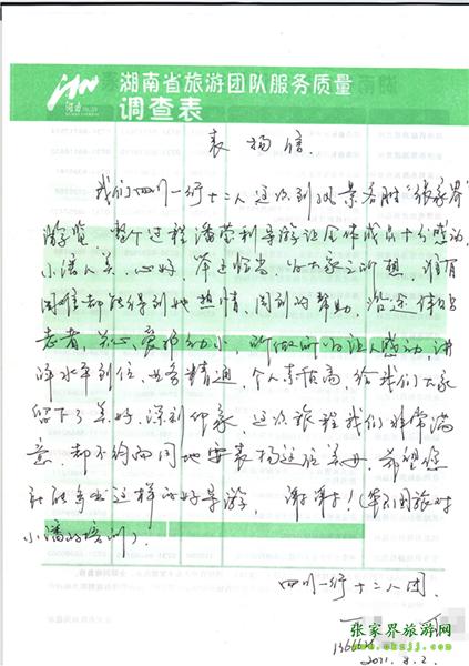 - 游客夏先生為表揚導游李姣姣寫來表揚信致我張家界... [14811]