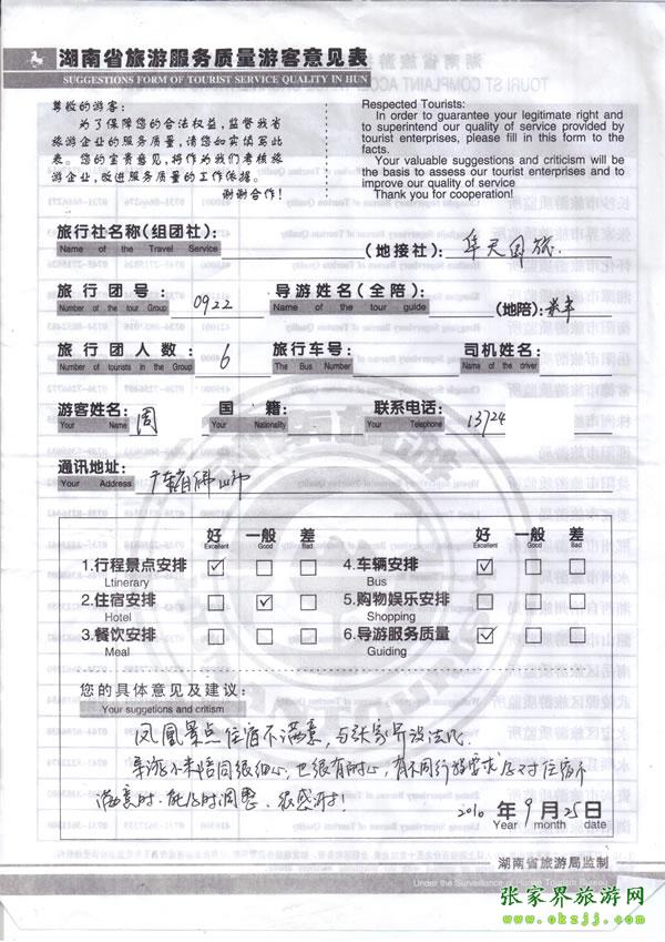 - 2011年10月26日張小姐一行18人旅游質量反饋 [10482]