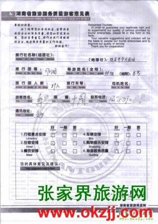 2010年7月4日岳陽鄒先生一行19位旅游質量反饋