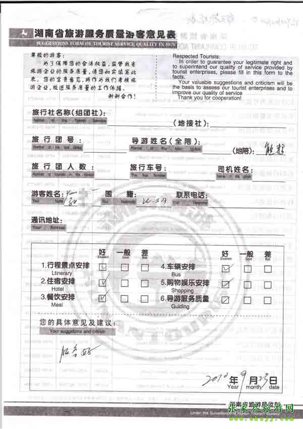 - 2011年10月26日張小姐一行18人旅游質(zhì)量反饋 [10482]