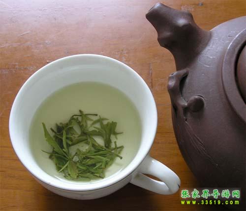 武陵源風景區(qū)盛產(chǎn)香茶,著名的有“青巖茗翠”、“龍蝦花茶”、“黃石寨云霧茶”、“天崇毛尖”與“索溪毛尖”等。通過1982年評比,“青巖茗翠”獲部級金杯獎,同年又獲全國首屆食品博覽會銀獎。“龍蝦花茶”也已列入全國名茶。人們經(jīng)過品嘗、評比,并經(jīng)茶葉專家鑒定,一致認為“青巖茗翠”、“龍蝦花茶”等具有外形美觀,內(nèi)質(zhì)優(yōu)良等特點。這種茶葉,從外形來看,條索緊結,圓渾彎曲,苗鋒顯露,銀毫滿披,色澤翠綠,從內(nèi)質(zhì)來看,清香馥郁,味醇回甘,湯色綠明,葉底均勻,飲后爽神,具有熟板栗蘭花之奇香,飲后回味無窮。據(jù)考證,“青巖茗翠”屬高山云霧茶一類。自古道:“高山出好水,云霧育佳茶”。黃石寨枇杷界海拔1000多米,氣候溫和,云霧繚繞,溫度適宜,因而,茶葉嫩度高,品質(zhì)好。這種獨特的環(huán)境為茶葉中的氨基酸,咖啡堿等有效成分的形成和增長,提供了優(yōu)越的生長條件,而對質(zhì)地粗老的纖維素的形成,則又起到了抑制作用。還有,這些山峰上日照短,直射光少,漫射光多,晝夜溫差大,土質(zhì)的有機質(zhì)豐富,因而結構疏松,排水又好。一切這些因素,都為茶葉的平穩(wěn)生長創(chuàng)造了良好的條件。所以“青巖茗翠”茶,就博得了各地名家的一致好評。湖南省茶葉學會秘書長、湖南農(nóng)學院副教授朱先明品了這種茶以后,賦詩贊美: