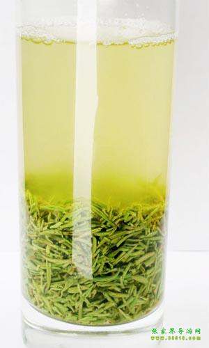 “天崇毛尖”的特點是:條索緊結,圓渾彎曲,苗鋒顯露,披滿銀毫,色澤翠綠,清香濃郁,味清醇甘,葉底均勻,飲后有提神醒腦的功能。這種茶在制作時要經(jīng)過殺青、初揉、復炒、初烘、整形、攤涼、干果、包裝等八道工序?,F(xiàn)在,這種名茶已在永定區(qū)成批生產(chǎn),游人可以任意選購。