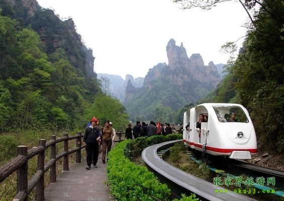 在十里畫廊盡頭。這里怪石嶙峋,林木蔥籠,常有三五成群成百上千只猴子在此會集,故稱猴子坡。游人至此,或樹叢之中,或山間古道,常見群猴在懸崖絕壁上攀援嬉戲,有的盲目在藤蔓上攀跳,有的獨坐巖石抓耳搔腮。惹得游人眉開眼笑,興味無窮。 從南天門向對面望去,可見三座瘦削石峰,形如美女,婷婷玉立,故名“三女峰”。三女峰尤以第三峰奇妙,于石峰胸部有一直徑約1米乳眼, 由孔中可窺山后天光,既像高懸在石壁上的明鏡,又像少女佩帶著一枚晶瑩透明的玉飾。 過南天門繼續(xù)登山約200注,有一岔道口,叫月亮埡, 往右便是天子山石家檐景區(qū),向右斜上則通天臺。天臺海拔1020米,有東西兩個觀景臺。東臺為一懸空巨石,四周雜樹叢生,古松倒掛,是觀日出的理想之所。西臺俯視西海最妙,但見幽深莫測的峽谷中,千峰聳立,戴翠披綠,秀麗的景色盡覽眼底。 十里畫廊觀光小火車票價:單程30元/ 人,雙程40元/人。優(yōu)惠門票價格單、雙程由現(xiàn)行每人次14元和19元調整為18元和24元。 優(yōu)惠政策規(guī)定:根據(jù)有關文件規(guī)定,十里畫廊觀光電車門票價格對身高不足1.2米的兒童實行免費;對身高1.2米至1.5米的未成年人實行優(yōu)惠;對24歲以下學生憑學生證享受優(yōu)惠;符合《殘疾人實用評定標準》的殘疾人、60周歲以上老人、現(xiàn)役軍人、烈士直系家屬、持有民政部門頒發(fā)的《城鄉(xiāng)居民最低生活保障金領取證》的人員憑有效證件享受優(yōu)惠;此外可在特定日期對特定群體(如教師節(jié)對教師、建軍節(jié)對軍人等)實行減免優(yōu)惠。 湖南唯一一家全國百強國際旅行社、湖南五星級旅行社:華天國際旅行社 品牌卓著,信譽度高,是游客理想選擇接待單位。