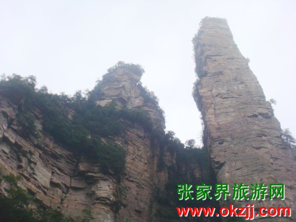 什么?有人說夫妻巖是兩個(gè)石頭啦。那旁邊的那個(gè)石頭是第三者?我暈,佩服你們的想象力啊。夫妻巖位于黃石寨對(duì)面山頭,張家界山莊后,在田家臺(tái)的對(duì)面,有兩個(gè)自然生成的山峰。這山也真奇,一個(gè)象男,一個(gè)象女,頭挨著頭,身靠著身,有眼睛,有鼻子,有頭發(fā),有嘴唇,就連眉毛與牙齒,也看得清清楚楚,明明白白。他倆站在高山,立在神地,相親相愛,永不分離。相傳,這是花仙山荷花與養(yǎng)蜂人田花郎歷盡千辛萬苦,幾度起死回生結(jié)合而成的,如遇自己的紅顏知己,可以去此處看看,許下心愿可保夫妻和睦,家庭幸福。
