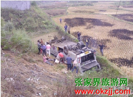 丈龍鼻嘴發(fā)生交通事故 09年9月16號下午,到古丈經(jīng)過的時候發(fā)生了一起重大交通事故.交警,消防,120都到達了,正在 展開救援,目前2死,N傷. 是一輛黑色吉普車緊急調(diào)頭,張家界的旅游大巴車速過快,沒剎住車,先是撞到路邊 的路桿,之后從變壓器旁邊沖了下去.! 這臺張家界旅游車(湘GY1133)在經(jīng)過古丈境內(nèi)時發(fā)生翻車事故,目前已經(jīng)造成2人死亡,多人受傷, 尚不知道出事車上導(dǎo)游和司機生死情況,我們將繼續(xù)關(guān)注、提醒各位導(dǎo)游,一定要提醒師傅注意車速,安全行 車,不可因為一味趕時間忽略安全.