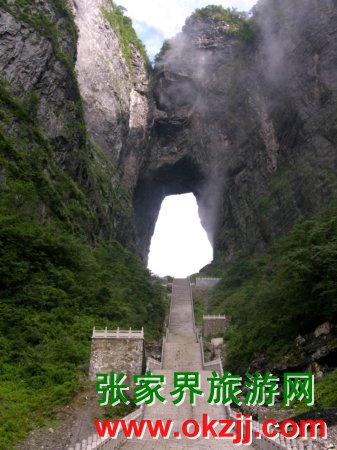 天門(mén)山古稱云夢(mèng)山,又名玉屏山。坐落在張家界市區(qū)以南10公里處。公元263年,因山壁崩塌而使山體上 部洞 開(kāi)一門(mén),南北相通。三國(guó)時(shí)吳王孫休以為吉祥,賜名“天門(mén)山”。 天門(mén)洞,位于海拔1260多米的絕壁 之上,門(mén)洞高131.5米,寬37米。據(jù)地質(zhì)專家考證,門(mén)洞中央系東西巖層向 斜的交匯處,因擠壓而導(dǎo)致巖 石破碎崩塌,最終于263年形成門(mén)洞。天門(mén)山海拔1517.9米,因與山下市區(qū)相對(duì)高差達(dá)1300多米,故尤顯 偉岸挺拔,其天際線之美,堪為山的典型。